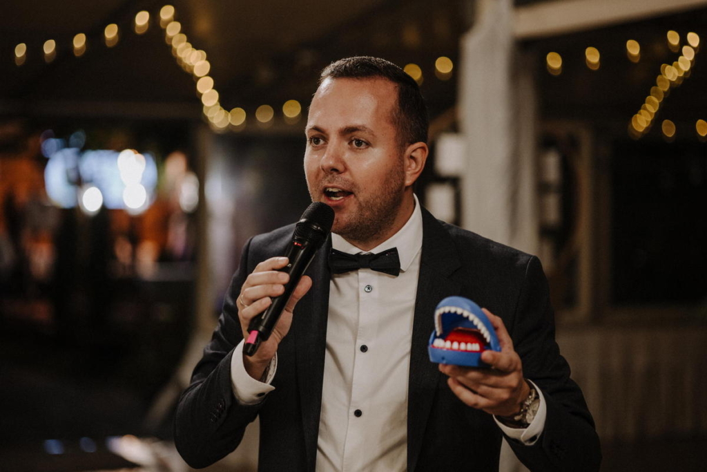 A jó hangulat borítékolható! Minden esküvőnek megvan a maga egyedi varázsa, ugyanakkor az elsődleges cél a jegyespárok részéről általában egy és ugyanaz: szeretnének egy jó hangulatú, élményekkel teli napot, melyre évek múlva is széles mosollyal tudnak visszaemlékezni. Érdekes sztori az enyém, hisz kiskoromban megannyi falusi esküvőn vettem részt, akkoriban viszont még a vőfélyeké volt a főszerep, szakácstánc volt a vacsora után és az ablakban szerenádoztunk a menyasszonynak. Ez mára teljesen megváltozott, a párok nem vágynak rímes beszédre és az egyházi szertartás sem kötelező eleme már a nagy napnak. Viszont pont ez a “szabadság” ad egy olyan lehetőséget a szolgáltatók, így az én kezembe is, amellyel minden egyes esküvő egyedivé és felejthetetlenné tehető. Gera Gabi elintézi Nektek, hogy jó hangulatú, emlékezetes napotok legyen, maximálisan az igényeitekre fókuszálva. Mindent szabad, de semmi se muszáj!